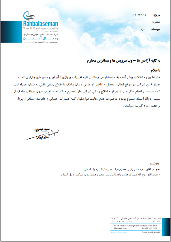 🔴 قـوانيـن و مقـررات خـريـد بليـط و تـور ره بـال آسمـان 🔴